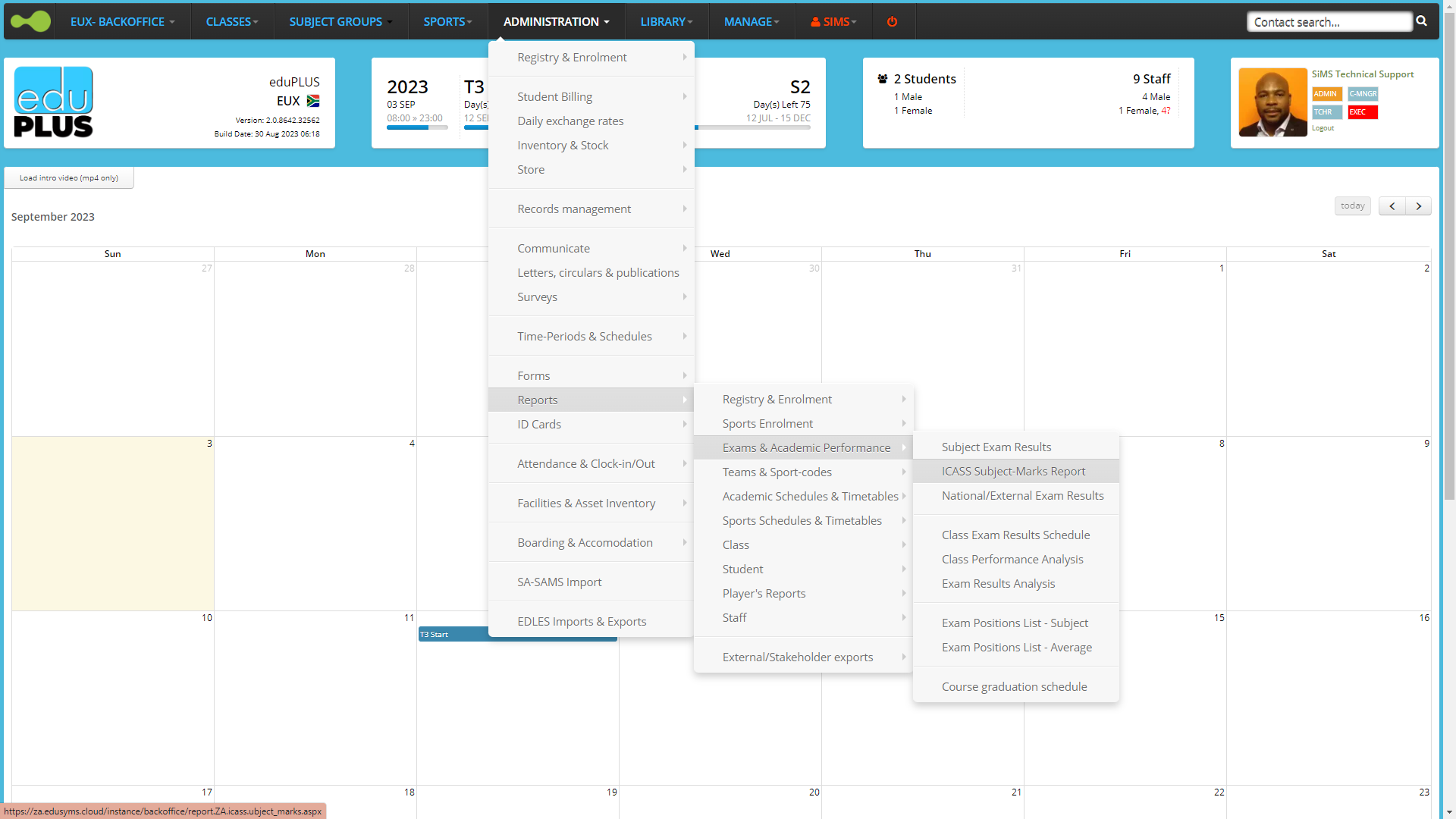 • Generate reports on everything from enrolment and academic performance to sports enrolment and exam results.