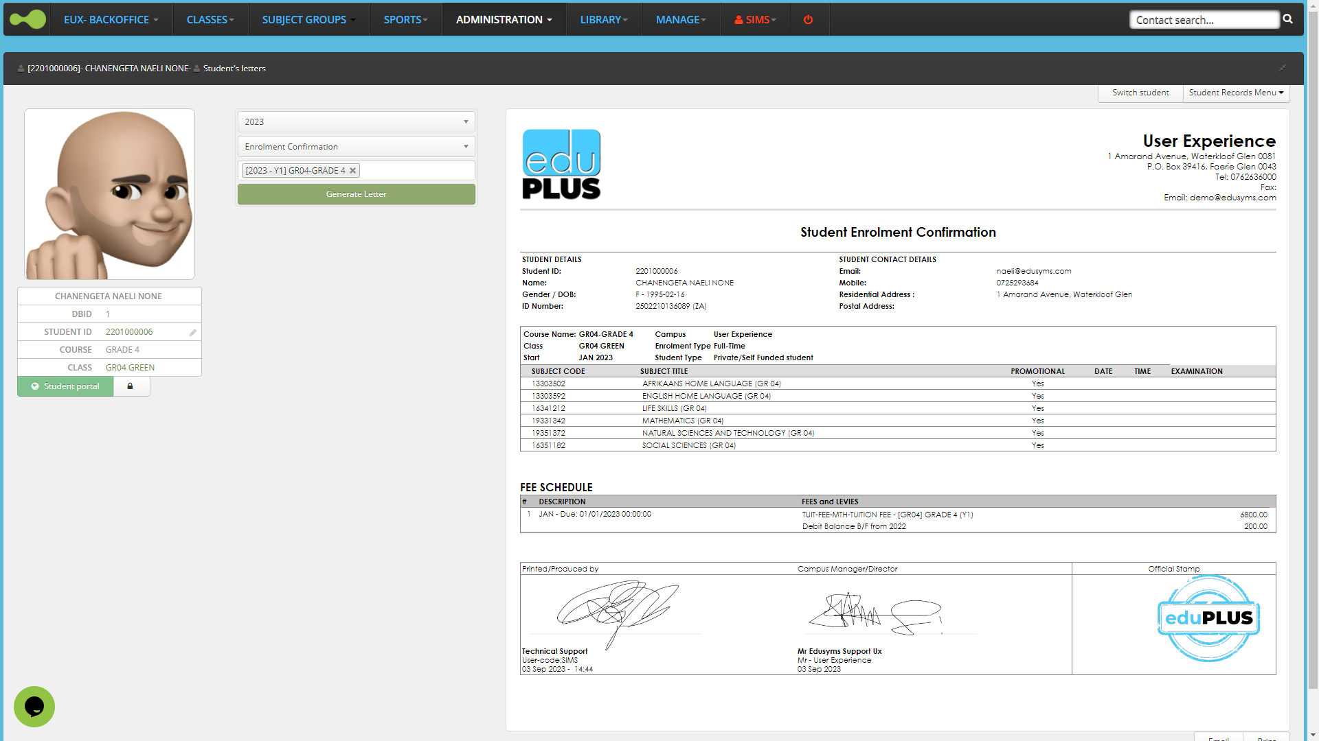 • Streamline your administrative tasks with features like student registry and enrolment, billing, inventory management, and more.